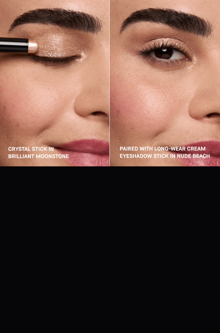 Appliquez le Long-Wear Cream Shadow Stick pour une couleur intense qui tient toute la journée, puis ajoutez le Crystal Eyes Shadow Stick pour une touche lumineuse et scintillante.