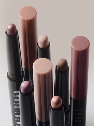 Seen here: Long-Wear Cream Shadow Stick in Mocha, 24 Hour Kajal Liner Waterproof in Cacao, Pot Rouge Velvet Matte in Warm Mocha, and Extra Plump Lip Serum in Bare Cocoa.